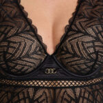 Ysé chose a SERAM textile ornament to enhance her “Triangle Sous les lilas” floral lingerie set. It’s a hand-sewn scalloped satin flower.